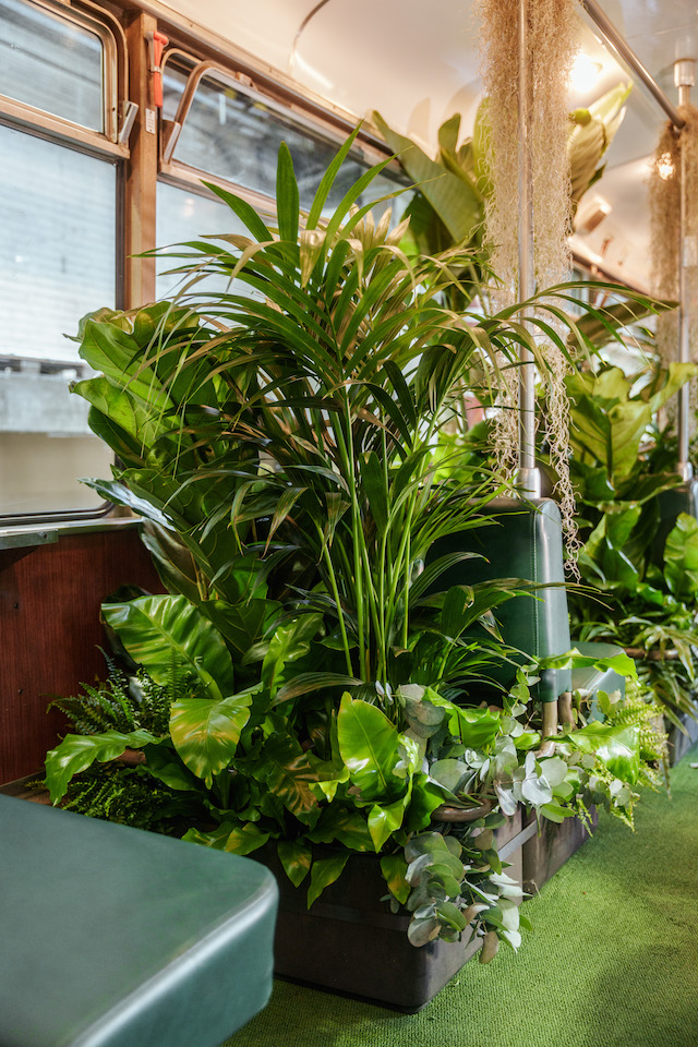 Rund 220 lebende tropische und subtropische Pflanzen wurden im Innenraum der Tram in Kunststoffgefäße aus Recyclingmaterial eingebaut. Die Gewächse erhielten Einzug auf Sitz- und Fensterbänken, in Staufächern und sogar auf dem Fahrstand im Heck.