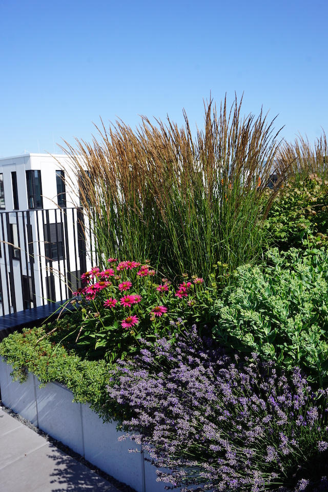 Außenräume prägen den ersten Eindruck – bei Kunden, Besuchern und Mitarbeitenden. Wir entwickeln funktionierende Gebäudebegrünung, die Design, Funktion und Nachhaltigkeit in Einklang bringt. Von bepflanzten Trögen in Eingangsbereichen über die Gestaltung von Terrassen und Balkonen bis hin zu durchdachten Konzepten für gebäudenahe Grünflächen entsteht ein stimmiges Gesamtbild. Strukturgebende Gehölze schaffen in Kombination mit insektenfreundlichen Duft- und Blühsträuchern eine dauerhafte Kulisse, ergänzt durch winterharte Stauden, die für lebendige, saisonale Akzente sorgen.
